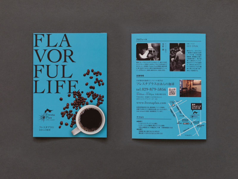 自家焙煎珈琲豆のお店のリーフレット、包装紙