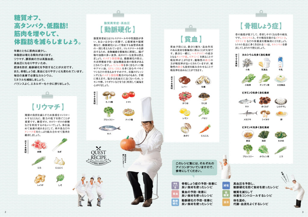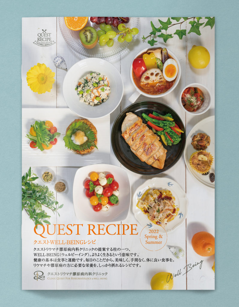 レシピ集の冊子デザイン 冊子,撮影,パンフレット ー発行 : クエストリウマチ膠原病内科クリニック編集 / フードコーディネート : 山田屋商店アートディレクション / デザイン / 挿絵イラスト : Kazuhiro Nonaka撮影 : Noriko Nonaka カテゴリー: 冊子,撮影,パンフレット chevron_left前へ 国土地理院報告会のポスター chevron_right次へ 学校案内パンフレット
