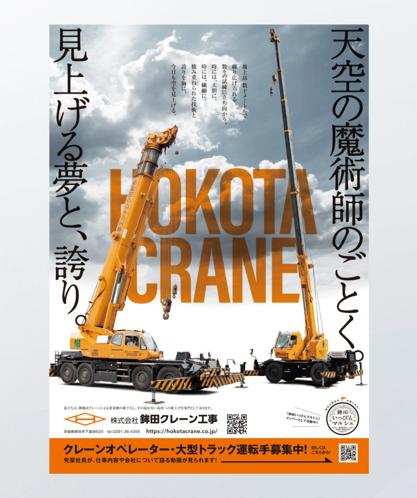 クレーン工事会社さんのポスター ポスター ーデザイン / コピー : Kazuhiro Nonaka カテゴリー: ポスター タグ: #鉾田市 chevron_left前へ クリニック発行のフリーペーパー chevron_right次へ 土木工事会社さんの会社案内パンフレット