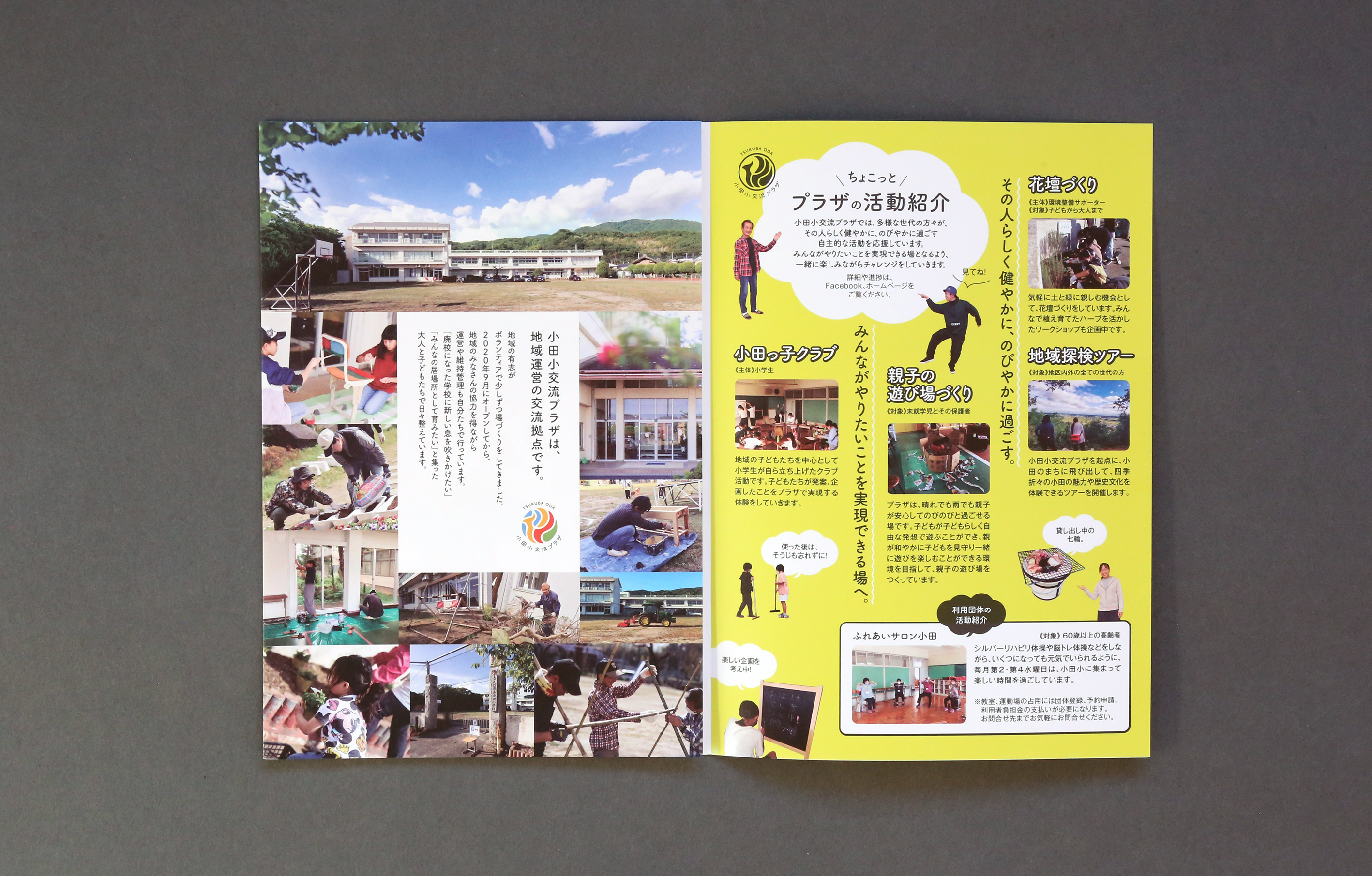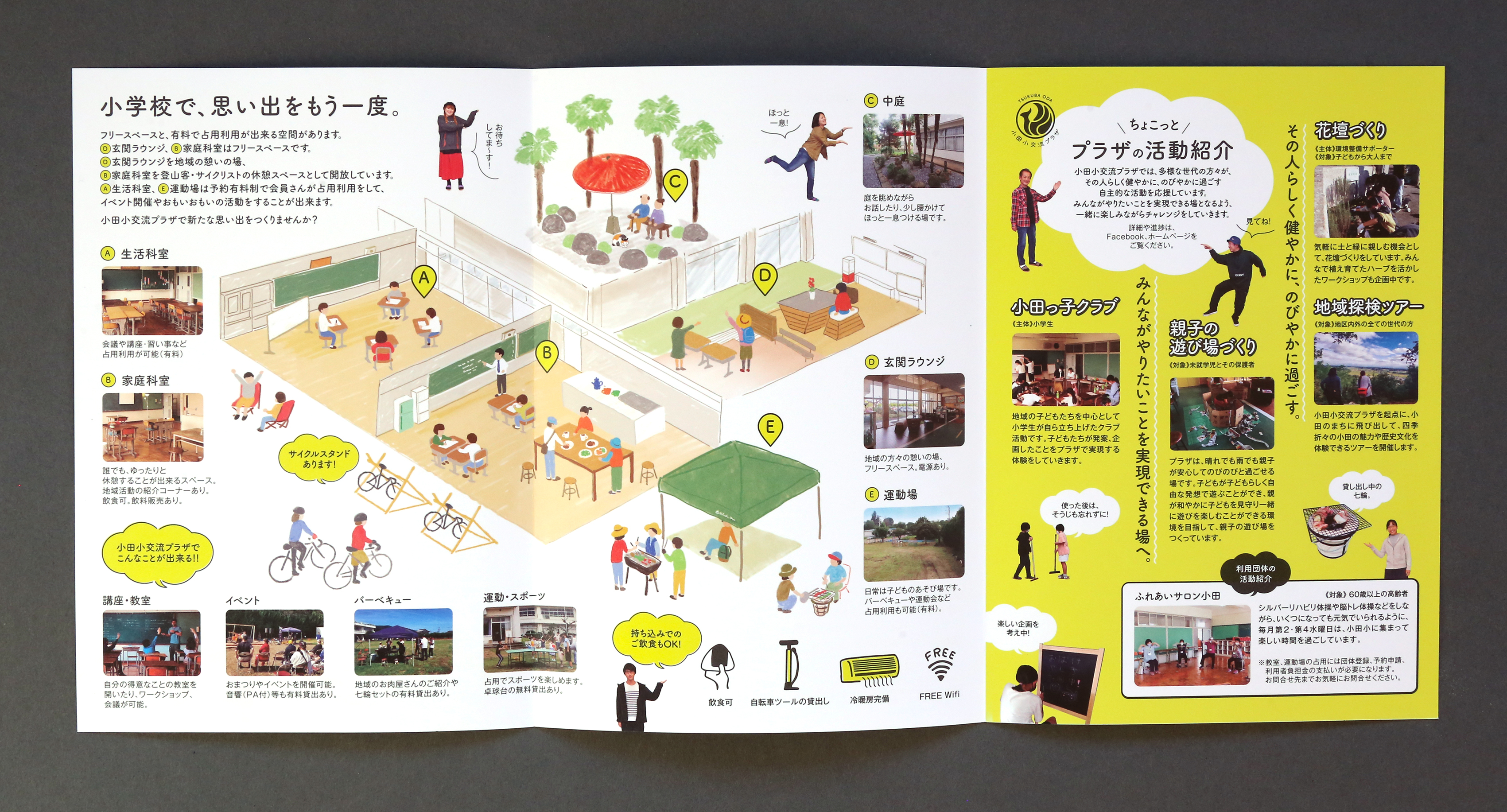 小田小交流プラザの施設案内パンフレット イラストレーション,パンフレット ーデザイン / イラスト : Kazuhiro Nonaka カテゴリー: イラストレーション,パンフレット タグ: #学校 chevron_left前へ 宝篋山の山バッジデザイン chevron_right次へ 廃校の小学校を活用してつくったコミュニティスペースのロゴマーク