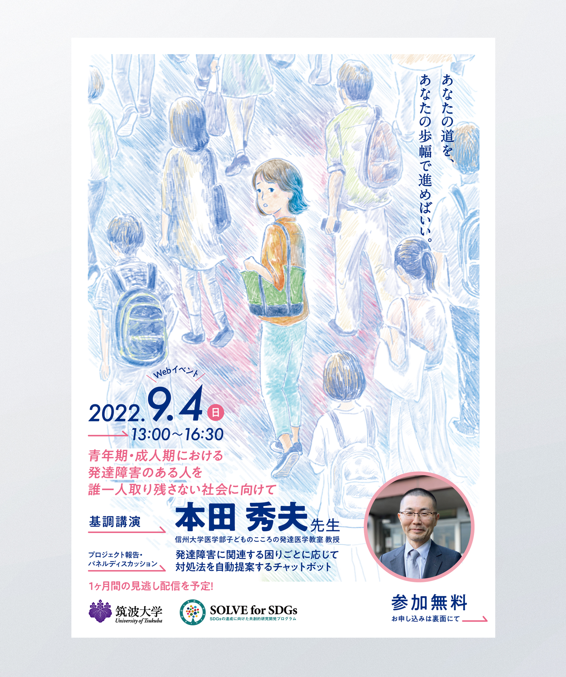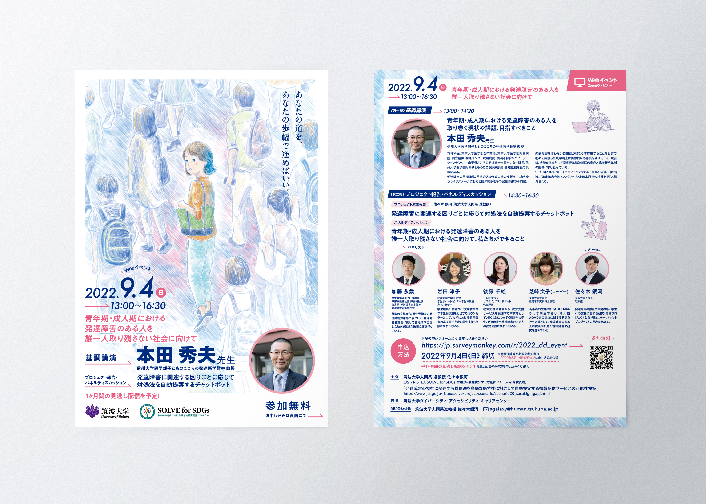 講演会のフライヤー イラストレーション,フライヤー 筑波大学の「青年期・成人期における発達障害のある人を誰一人取り残さない社会に向けて」基調講演のフライヤー制作。 ーディレクション / デザイン / イラスト : Kazuhiro Nonaka カテゴリー: イラストレーション,フライヤー タグ: #シンポジウム chevron_left前へ 「いばらきの地酒バー」オープン告知ツール chevron_right次へ シンポジウムのフライヤー