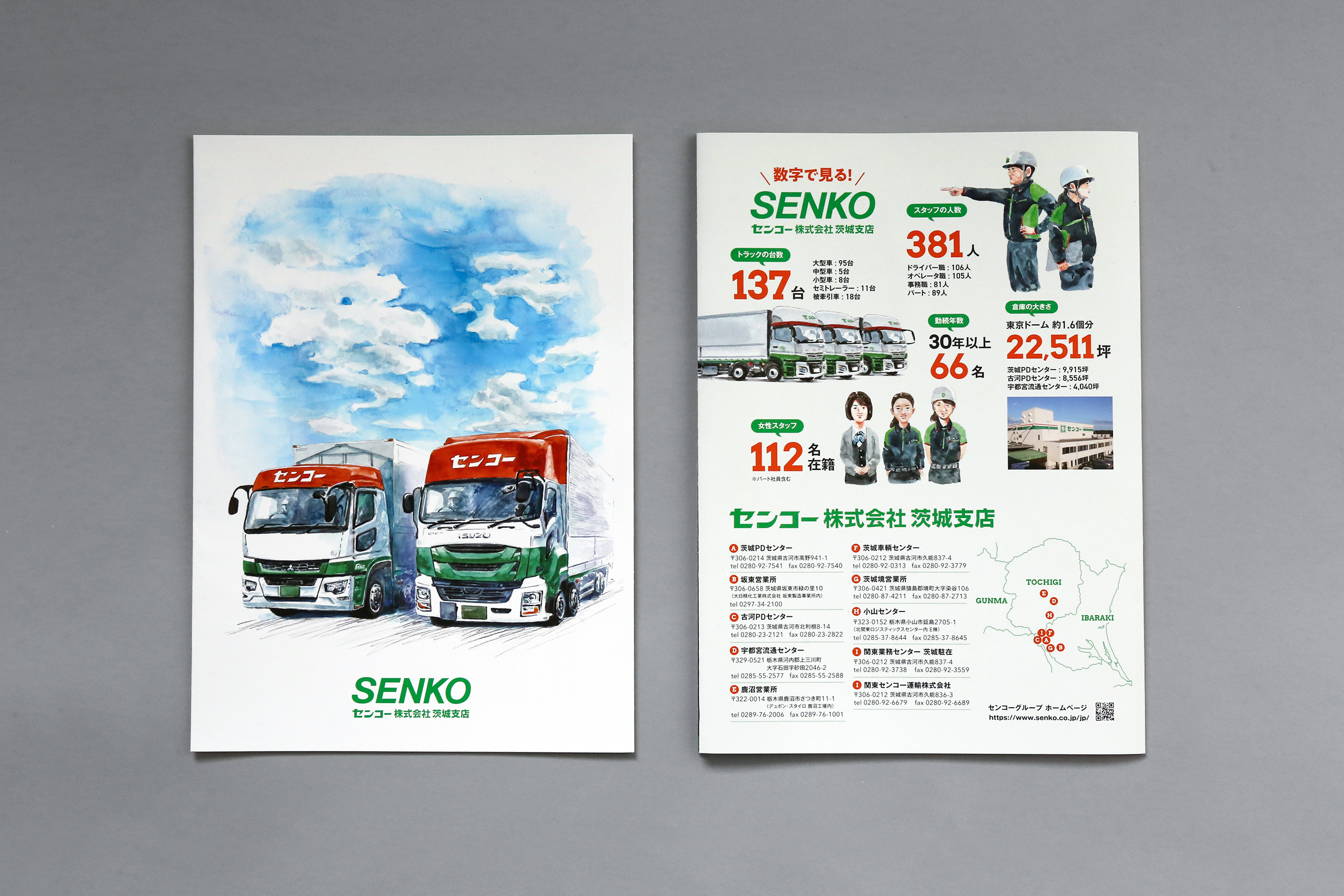 今回は、スタッフ採用を目的に、営業所ごとの特色が伝わる内容にしました。観音開きの8ページ仕様を提案しました。