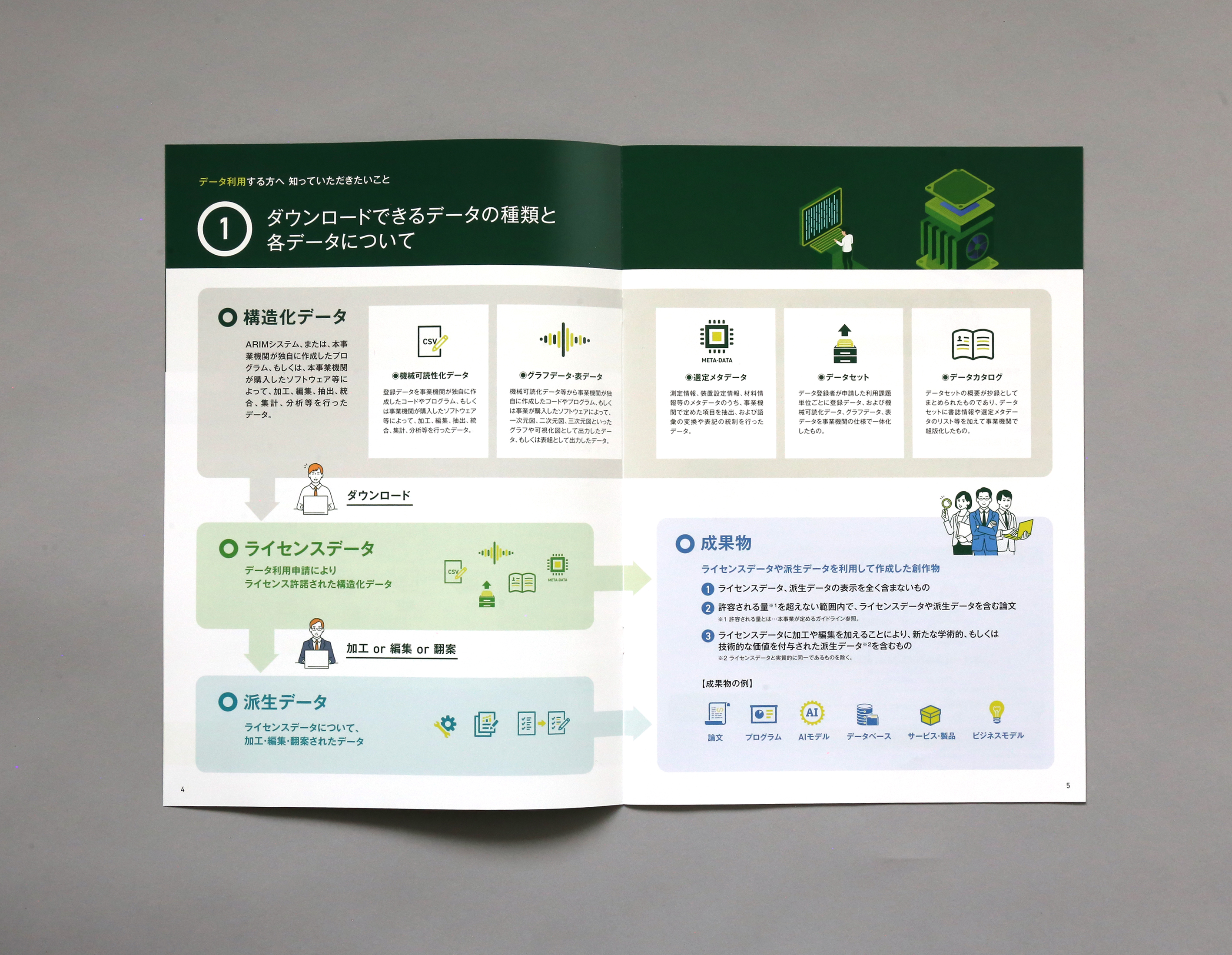研究データを利用、および登録する際の注意事項や知的財産権などの定義を図や表、イラストを用いて簡略化。