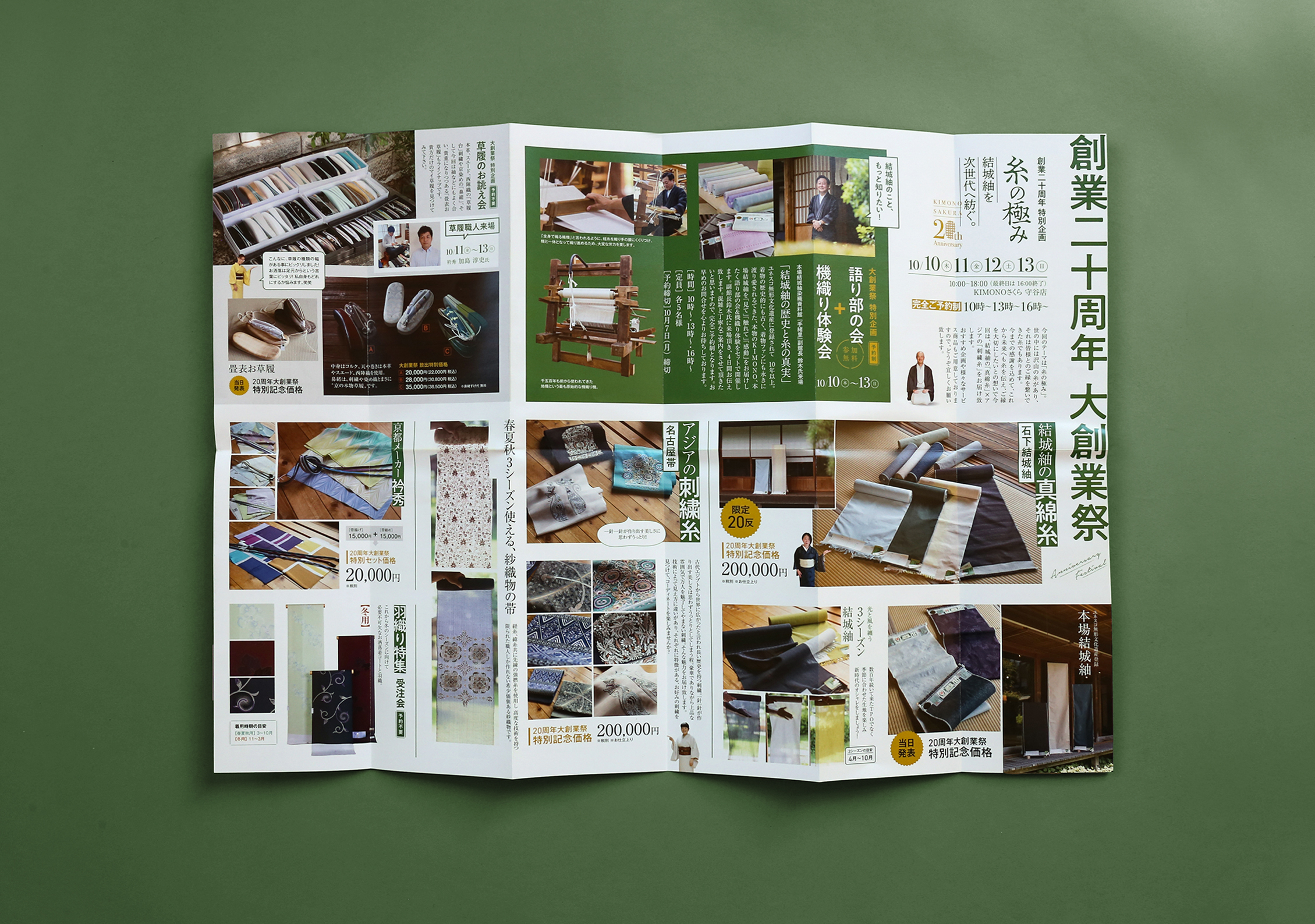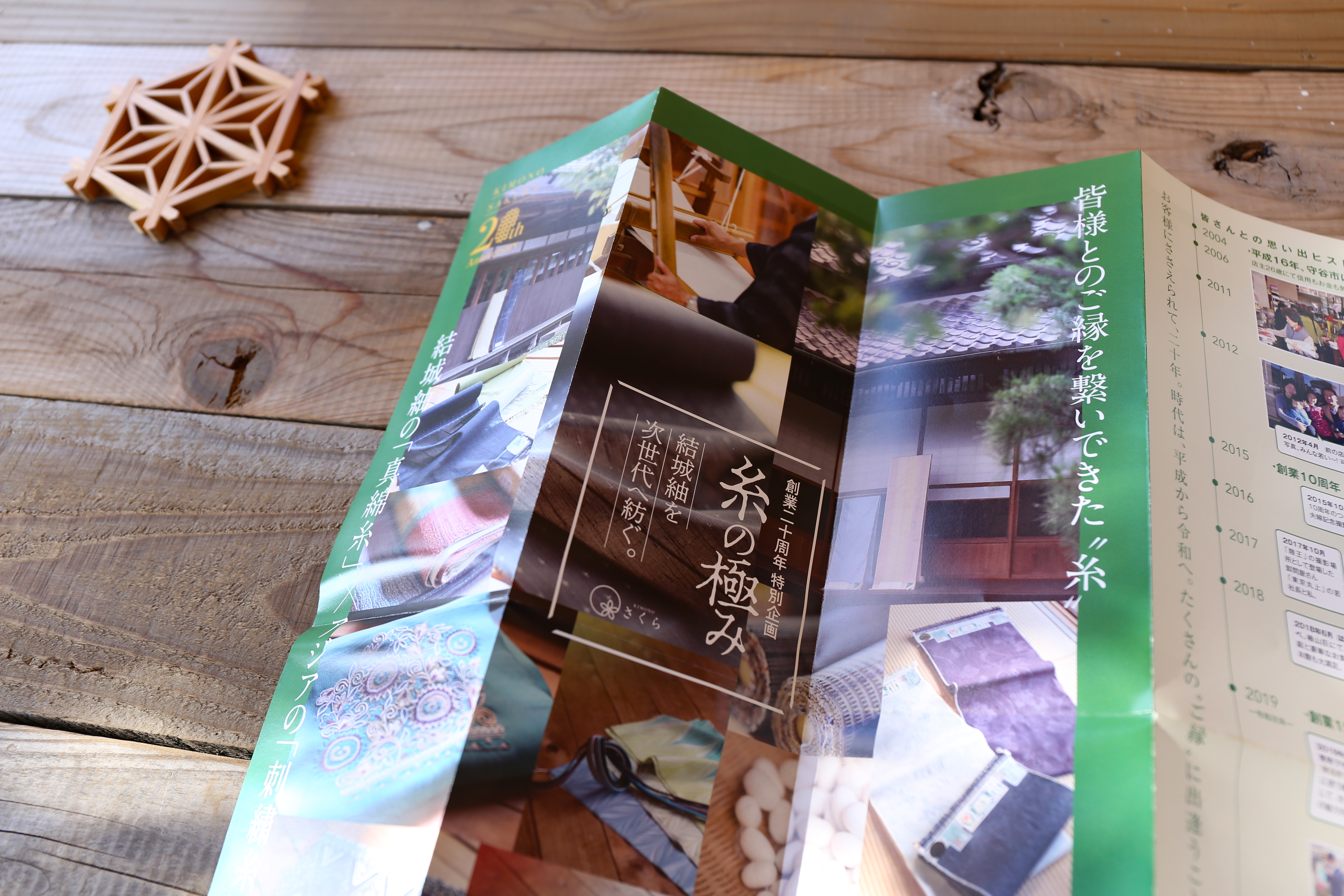 結城紬の真綿糸、アジアの刺繍糸など、糸をテーマにした呉服店の創業祭イベント告知。