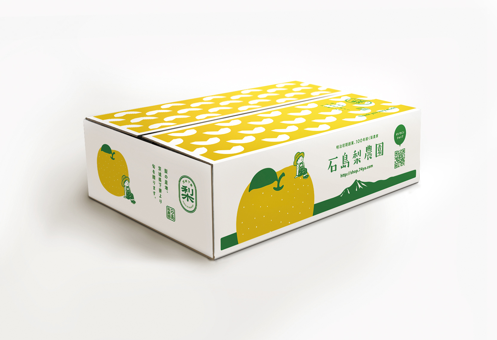 梨農家さんのダンボールデザイン パッケージ,ロゴ 下妻市で明治初期創業以来、100年続く梨農家「石島梨農園」さんの段ボールデザイン制作。ロゴタイプ(文字)は、オリジナル書体を制作しました。 ディレクション・レイアウト・イラスト : kazuhiro nonaka カテゴリー: パッケージ,ロゴ タグ: #ダンボールデザイン,#茨城県下妻市,#お土産 chevron_left前へ スペイン菓子の包装紙イラスト chevron_right次へ 昔話に登場するモノを紹介する冊子